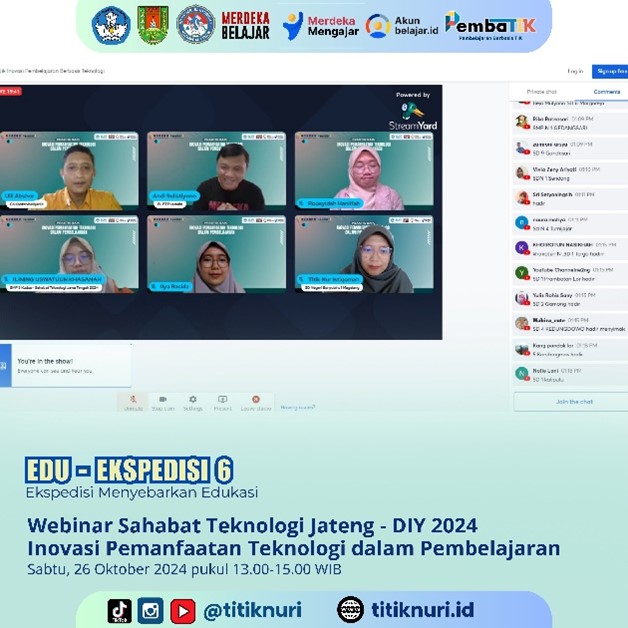 Pada Sabtu, 26 Oktober 2024, Saya berkesempatan untuk turut mengisi webinar bertajuk “Praktik Baik Inovasi Pemanfaatan Teknologi dalam Pembelajaran” sebagai upaya kolaboratif untuk menyebarluaskan praktik baik dalam penggunaan teknologi informasi dan komunikasi (TIK) di ruang-ruang kelas. Kegiatan ini menjadi wadah bagi para pendidik, khususnya Sahabat Teknologi Jawa Tengah – Daerah Istimewa Yogyakarta 2024 dan Co Capten Kabupaten Kudus untuk berbagi praktik baik, pengalaman dan wawasan dalam memanfaatkan TIK dalam proses pembelajaran.